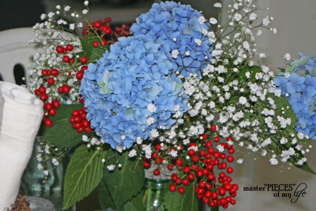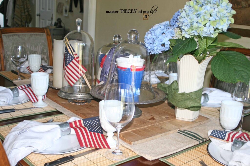 I always enjoy your displays and decorations MaryJo. I am loving the flags down the middle of the table in jars. Great idea! Those drinks look yummy too.