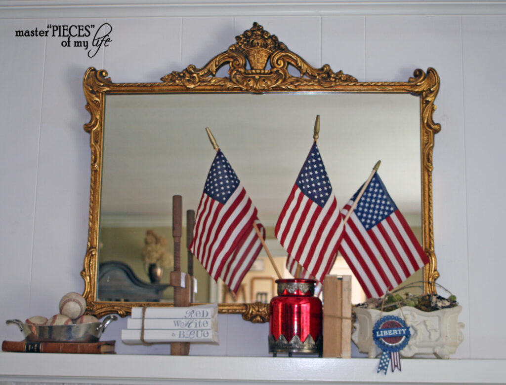 The mantel is always a fun stage for seasonal decor. Besides flags and bunting you can add other details that give off Americana vibes like baseballs, liberty, stars & stripes, etc.