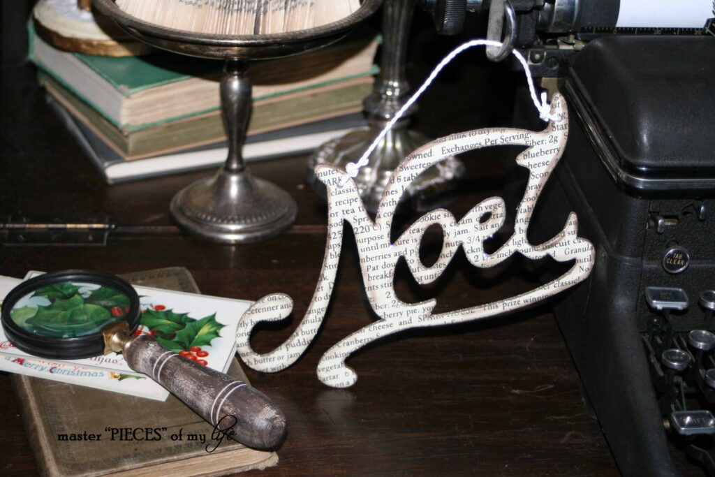 This store bought Noel ornament from Hobby Lobby is the perfect compliment to all this book print Christmas decor.