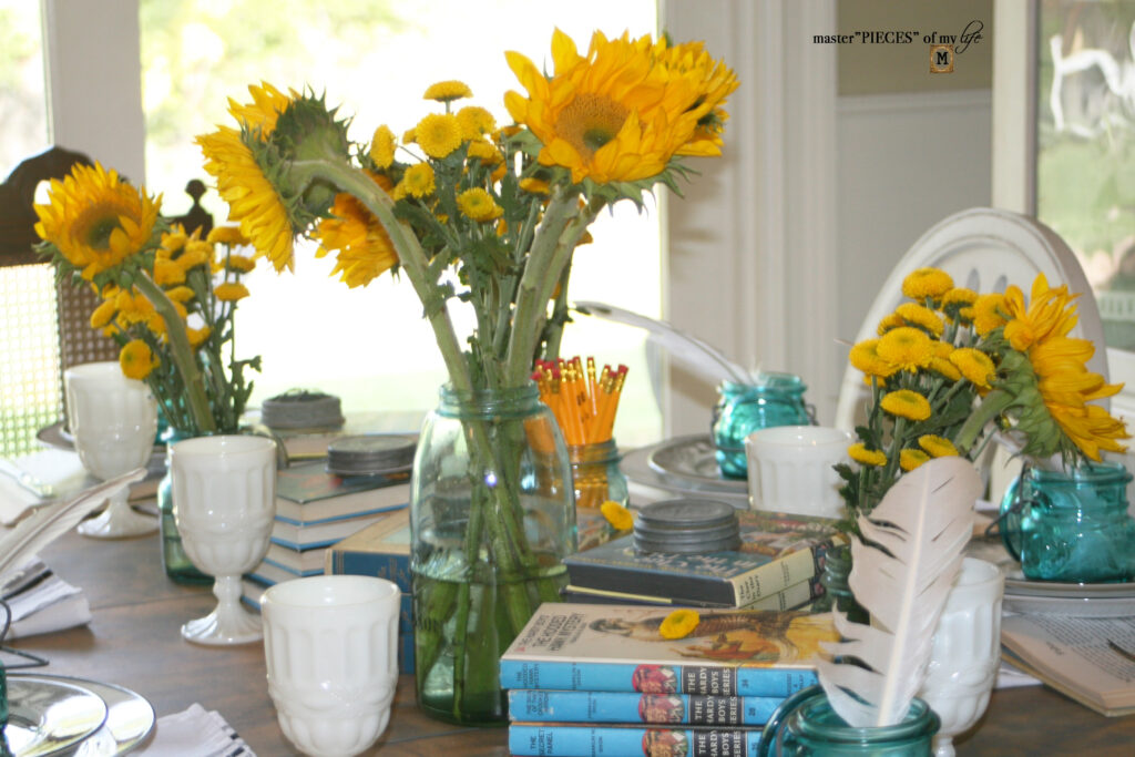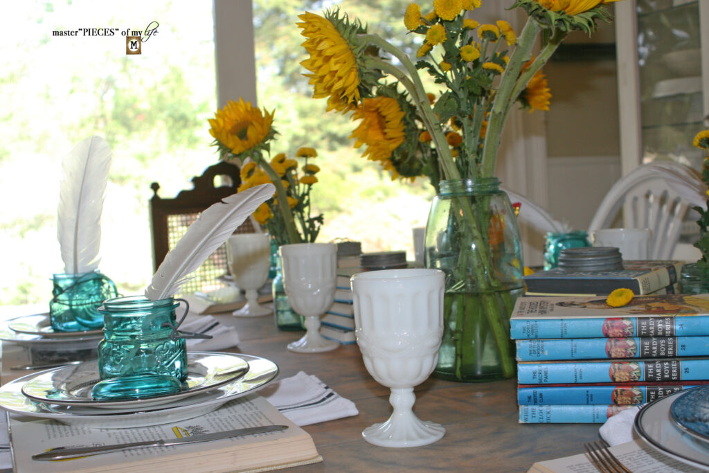This is such a creative tablescape, MaryJo! I love it. My mom and aunts used to read us Nancy Drew and the Hardy Boys before naptime and we went bananas for it. Every day would we say, “One more chapter – please – we swear we’ll go to sleep – just one more chapter!”? I can’t wait to send this to them. They’re going to be so excited about it! Hugs, loved and pinned, CoCo