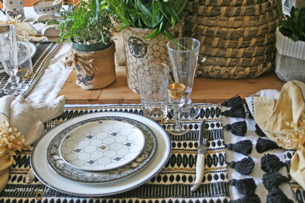 I used this burlap honeycomb container in the recent {bee theme tablescape}.