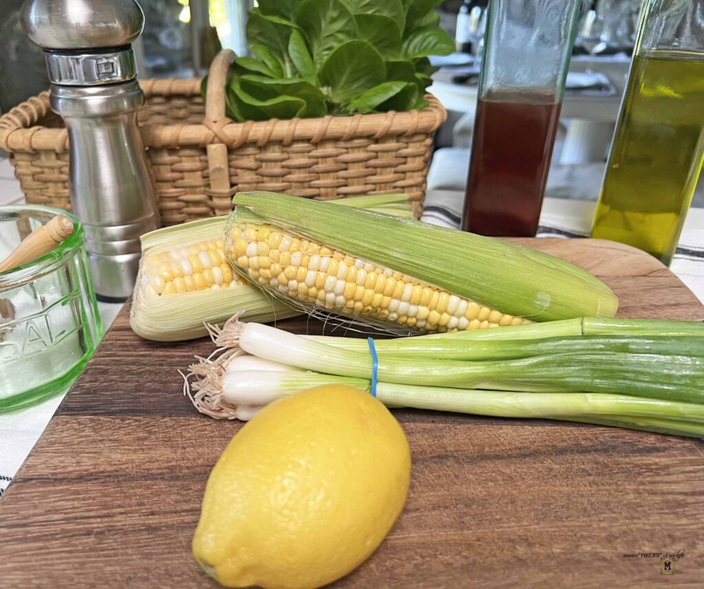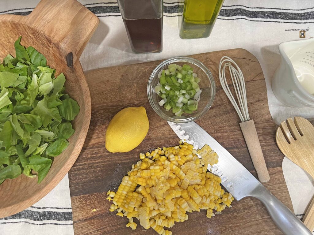 • Assemble lettuce, corn kernels and scallions in a salad bowl