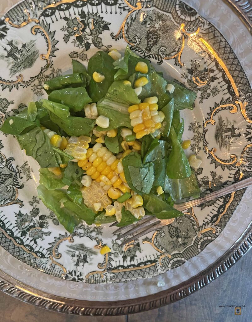 A tender butter crunch salad with sweetness from the corn and acidity from viniagrette is a burst of flavors and textures.