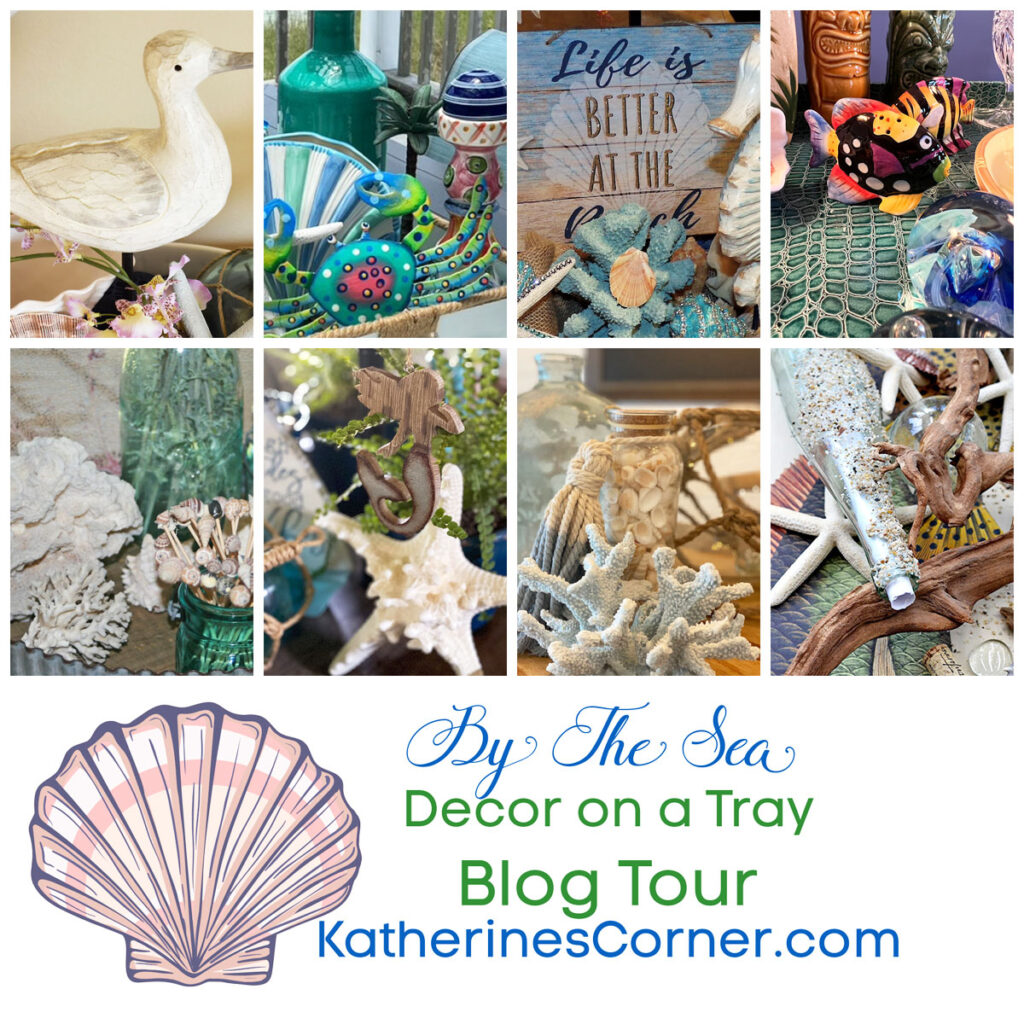 It’s time for another “on a tray tour”! This one has a coastal theme. I am sharing my by the sea on a tray vignette today on our kitchen table. A tray is always a great vessel and foundation to create a seasonal vignette and we are offering a variety of ideas and inspiration on the blog tour.