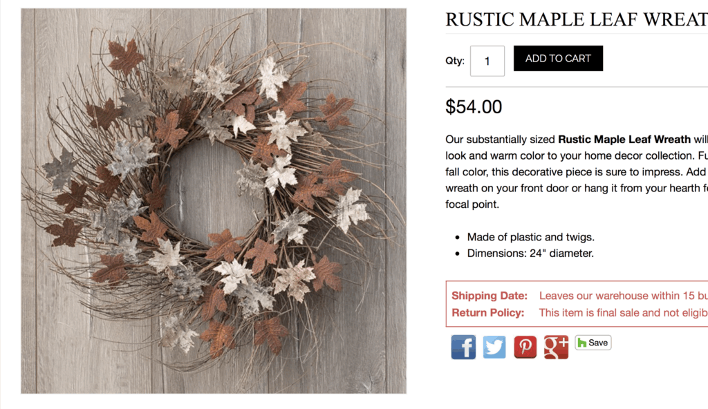 The inspiration for this project was this maple leaf wreath from Antique Farmhouse last year. I became slightly obsessed with it. It sold out. I wanted to create something similar, using metallic finishes.
