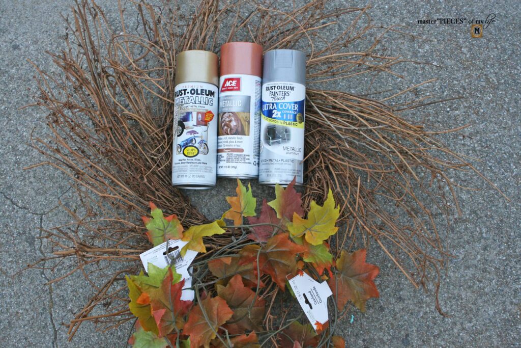 - 3. Spray paint equal amounts of leaves in each color {gold, silver & copper} on both sides.