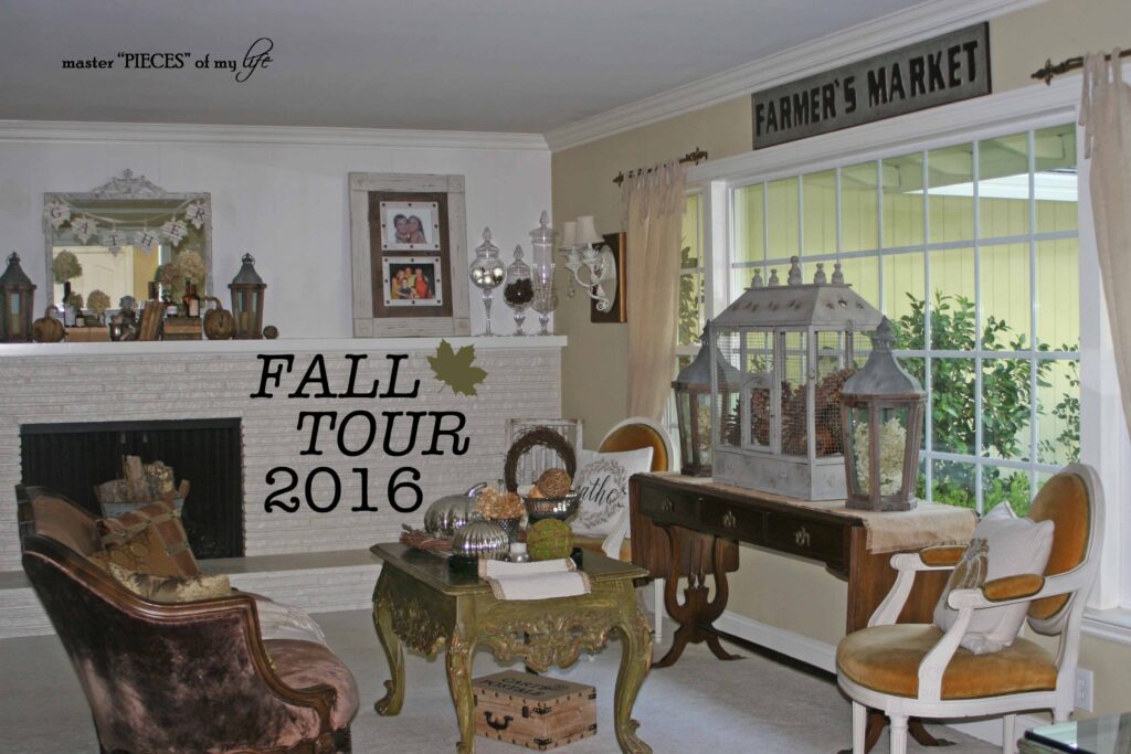 On the sideboard I decorated my tiered silver platter with a mix of real & faux pumpkins with gourds, pine cones, and leaves I collected outside.