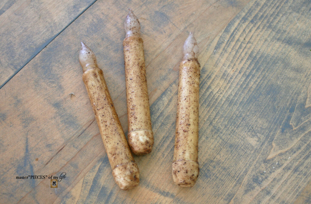 ?? 1. Start with store bought battery operated candles. These rustic store bought candles from Amazon were a good start. I liked the burnt finish but I found the candles rather flat, not only physically but also in personality.