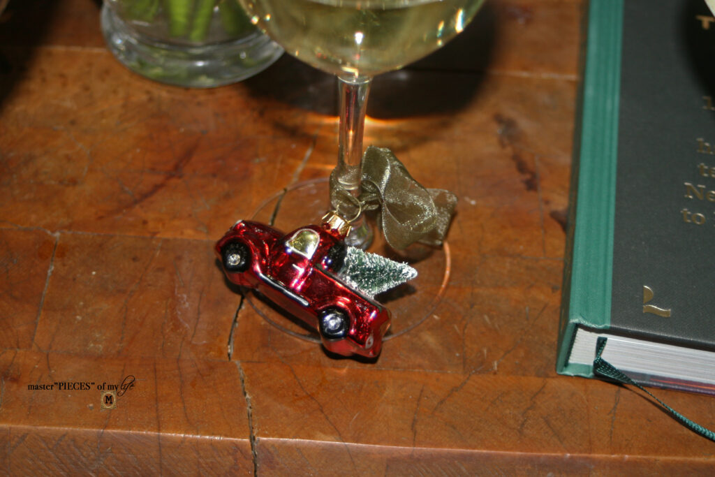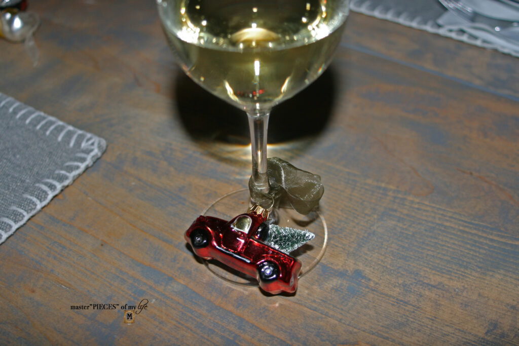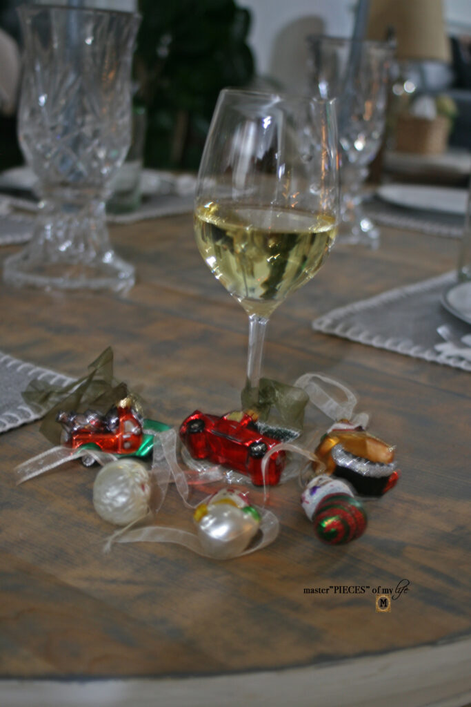 Simply string some ribbon through the ornaments and attach to the stem of your glass. I love little details like this that immediately elevate an occasion to a “special” level.