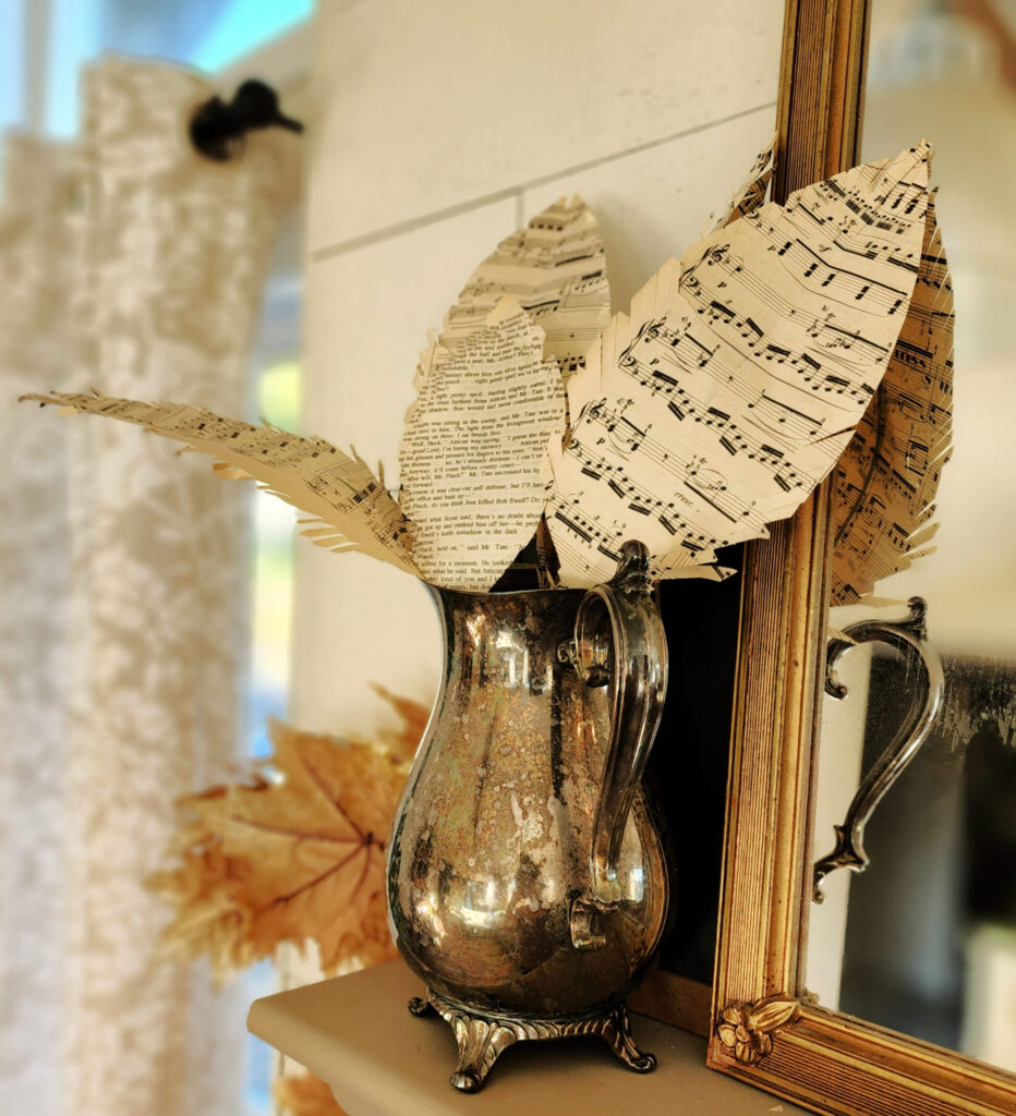 Tanya from the Twelve O Eight blog created these fabulous paper feathers from sheet music. Be still my heart. I love decorating with feathers this time of year, plus I love using vintage sheet music in all sorts of projects. This is a home run in my fall game book! Tanya also has some beautiful stylings. Pop over and check it out if you haven’t already.