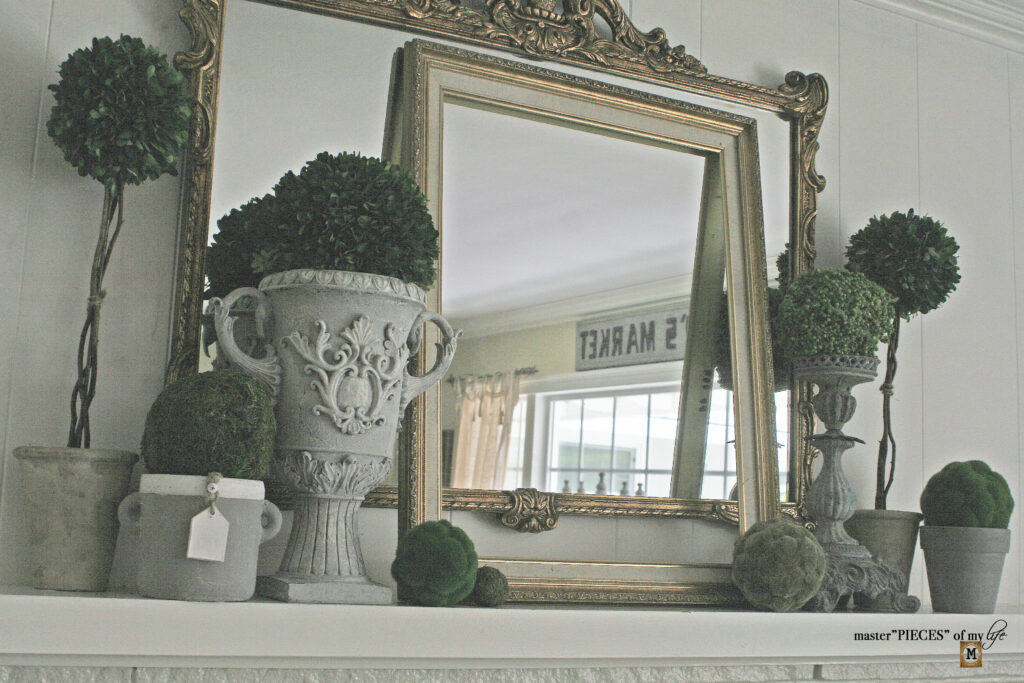 Shown here are three different heart shaped topiary trellis ideas which are perfect for the Valentine’s Day Holiday. These pretties will become low maintenance perennial decor pieces, which still add natural organic freshness to any space. They are part of the {Rustic and Organic Valentine’s Day Mantel Decor Styling} here at the Masterpiece home.