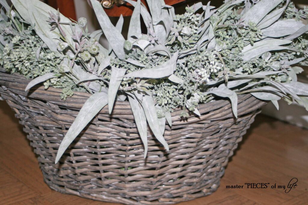 Also, I know many struggle with allergies and the like, so there’s nothing wrong with a basket bursting with faux greenery. You can keep it all year long with minimal maintenance.