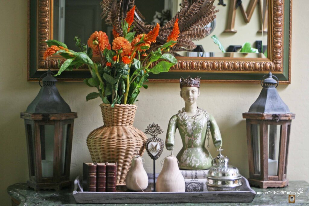 I love fresh flowers whether cut or potted, but you can get the same look with pretty faux or dried blooms.