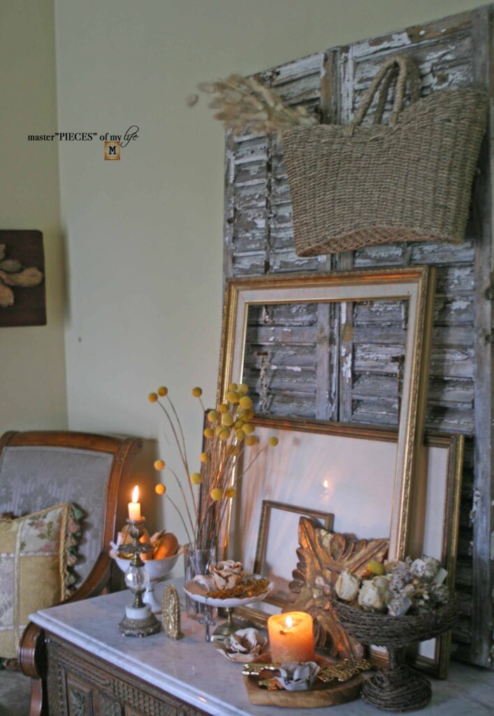 Even better, keep the look going into the holiday season with seasonal greenery. I use extra branches from our Christmas tree, but faux greenery would also be a great alternative here.