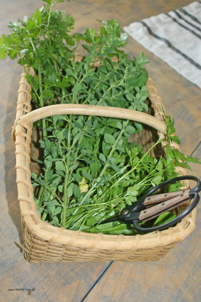 Sometimes just fresh greenery in a pretty basket evokes all the charming cottage feels. Fresh herbs from the garden in a basket always make me so happy.