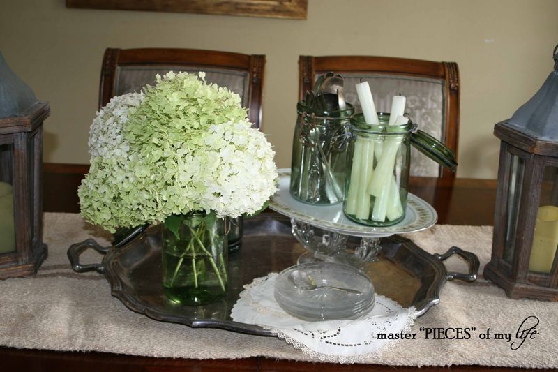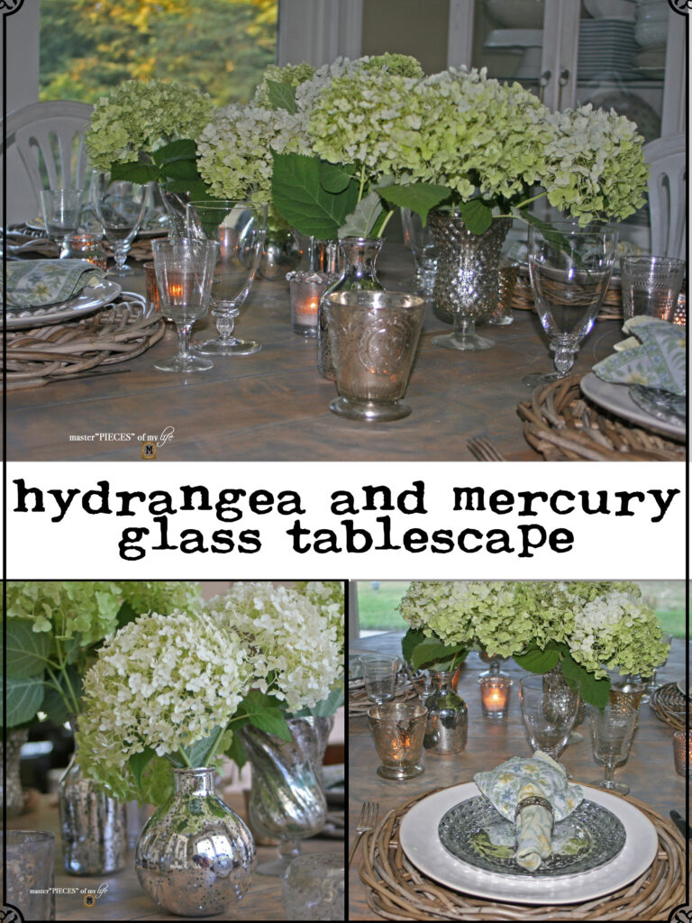 hydrangea and mercury glass tablescape