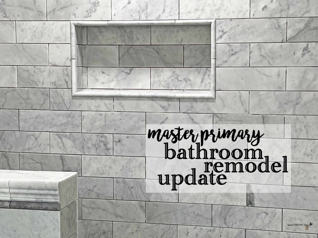 As promised. I am here to give you an update on our primary master bathroom remodel progress. It is looking so good! I am so ready to start buying all the finishing styling details, but instead I’m being patient and waiting until it’s done and ready. Good things come to those who wait, right? Come on in and check out all the details of our bathroom remodel update.