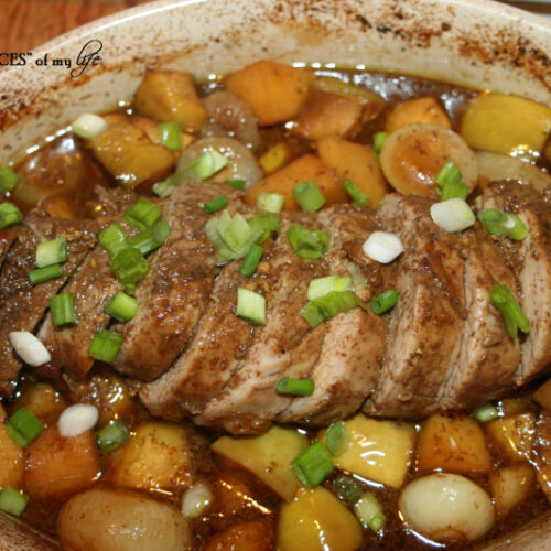 Do you love easy, one pot dinners? Yes! Then you’ll love this easy, yet super yummy recipe for roasted pork loin. The pork is accompanied with potatoes, apples and onions touching all the sweet and savory notes with a zing. Come on in and take a seat at our table.