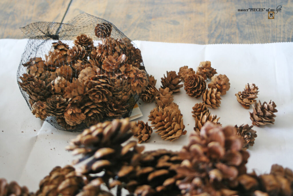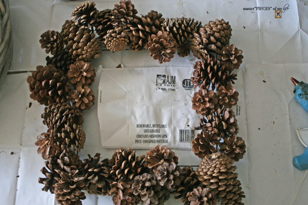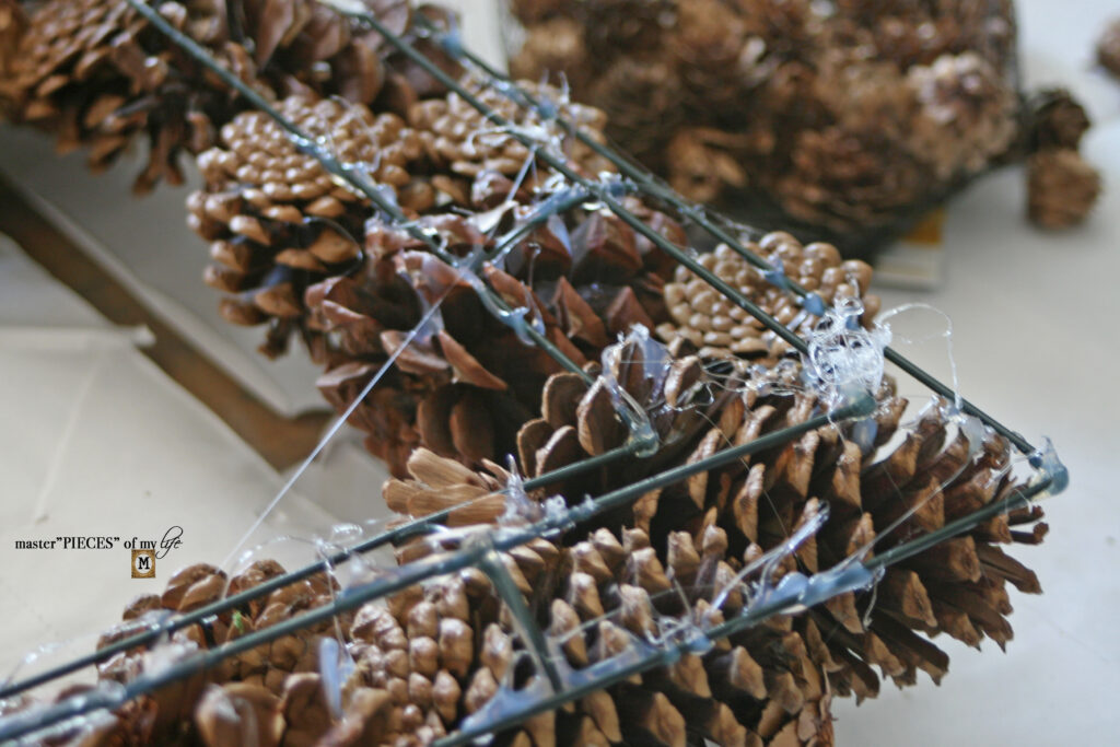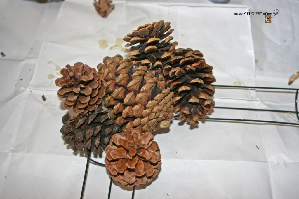 Make sure to alternate the size and color of the pinecones as you build around the form to create interest.