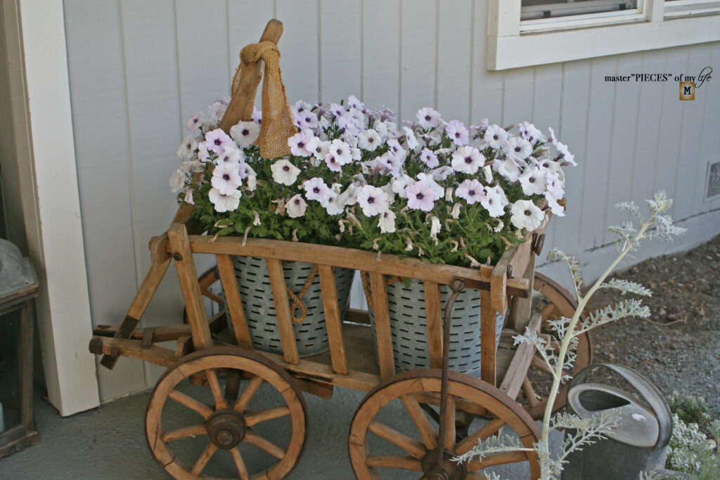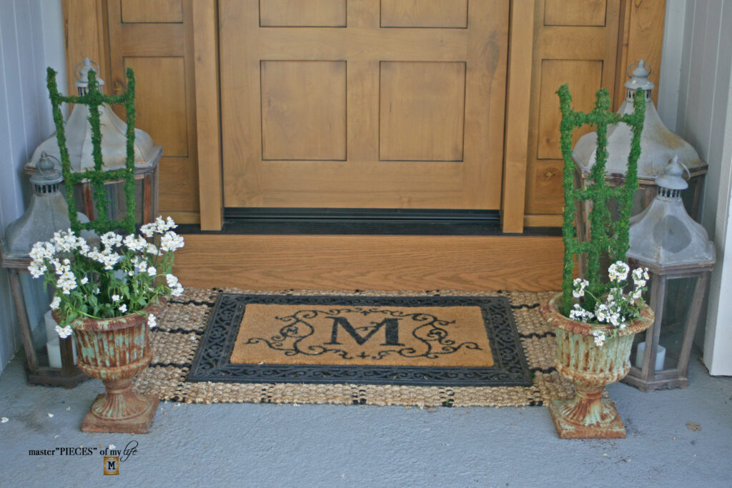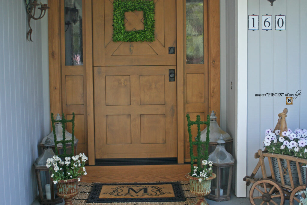 The front door area and porch have a new styling now that our new front dutch door has been installed. It’s not part of the yard per se but we incorporated some flowering plants to add to the charm of the door. If you missed the reveal post for the front door you can read all about it here {a new dutch door front entry}. A subsequent post to follow soon with many more details of the entire area styling, it’s just too many non garden related details to add here.