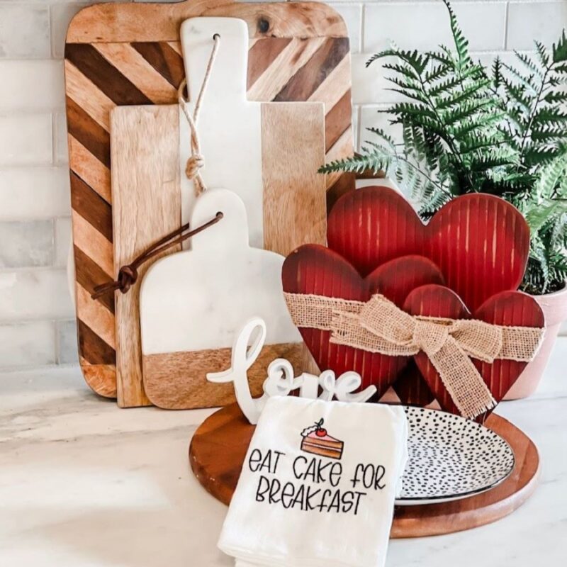 Hearts are the iconic symbol of the Valentine’s Day celebration. Just a simple heart hung in strategic spots will inject all the love feels for simple Valentine’s Day decor. Heart decor comes in all sorts of shapes, styles and sizes. Simply find something that coordinates and compliments your home design style.