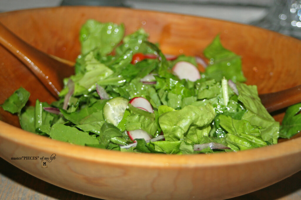 I shared some salad recipes here {9 summertime salad ideas}. Below is our typical side salad we share with most meals, but the post is full of different salads from main courses to side dishes.