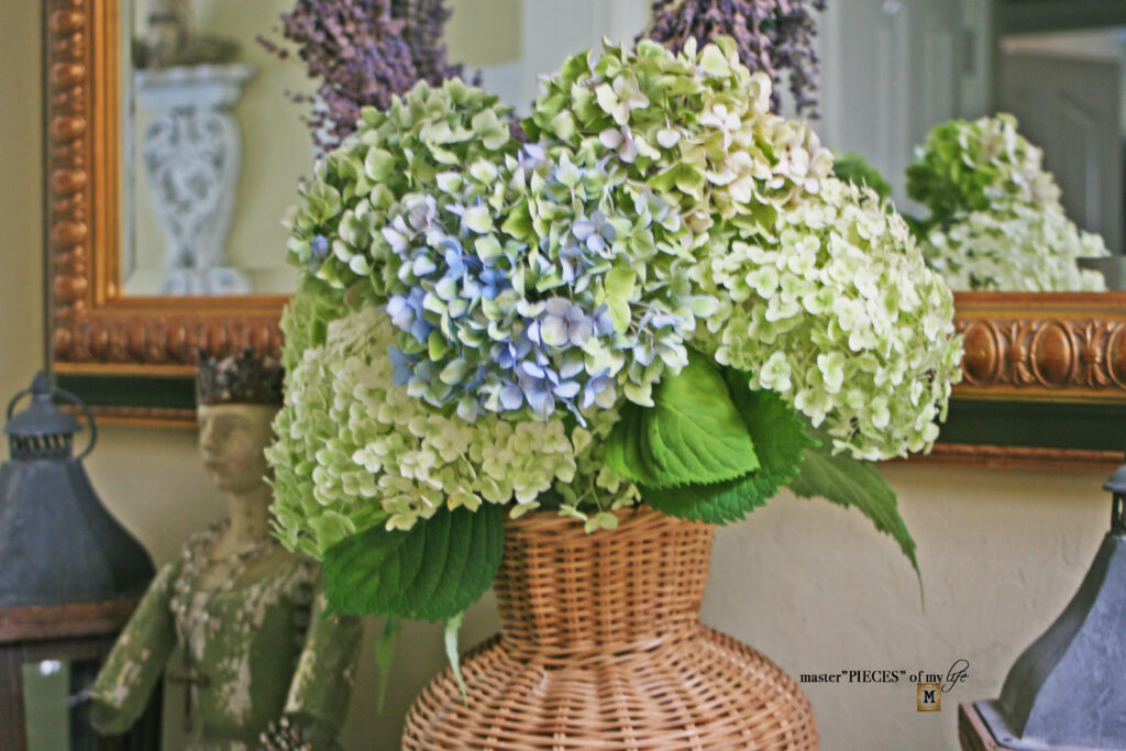 I used a combination of both hydrangea varieties to create a bouquet for the foyer.
