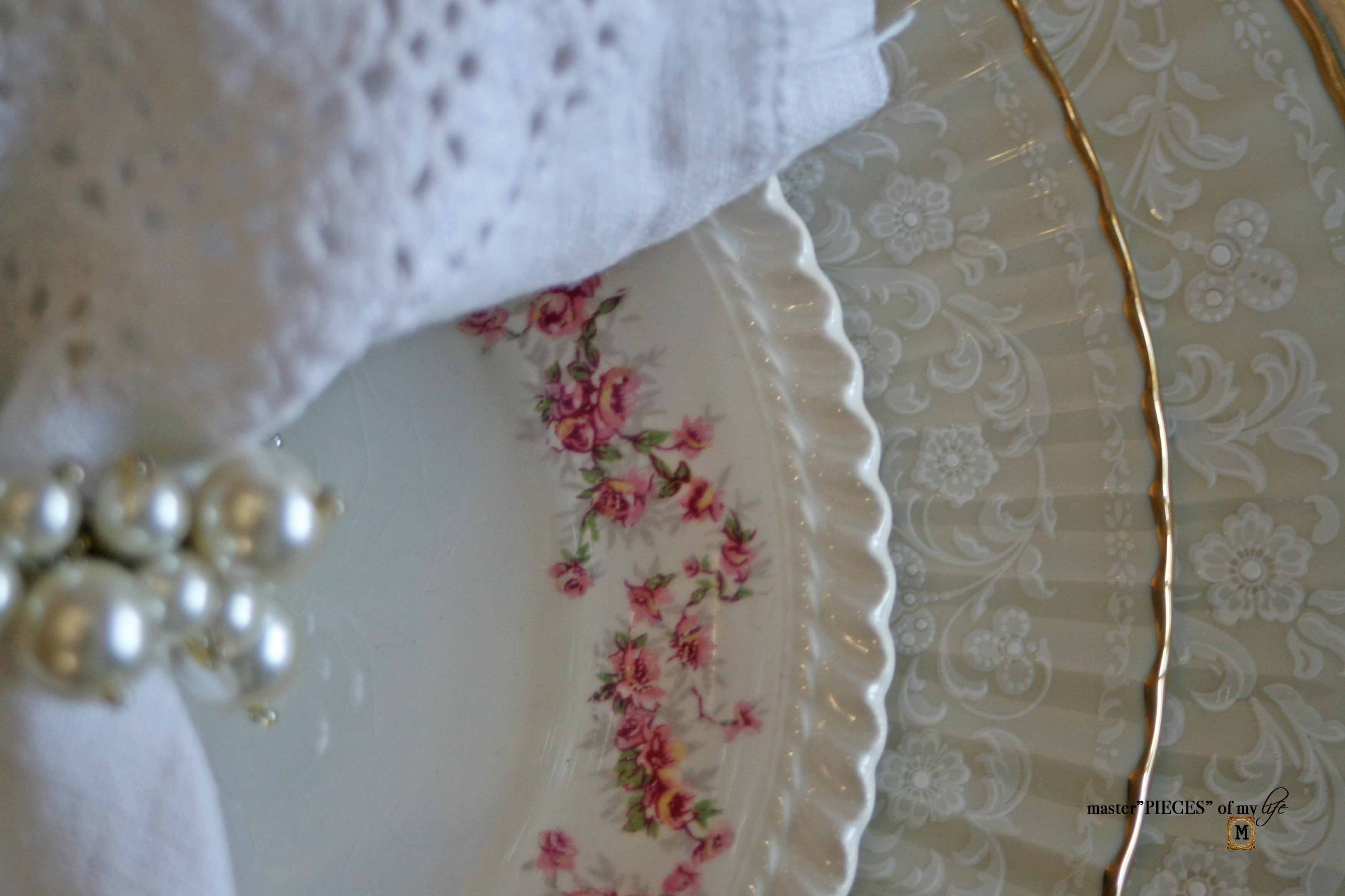I love all the soft romantic vibes on this table with a slight bit of edginess, giving it a whisper of a boho vibe.?It’s an eclectic mix of pieces, but I think the plates center it all together beautifully.?Did I mention how much I love these plates???