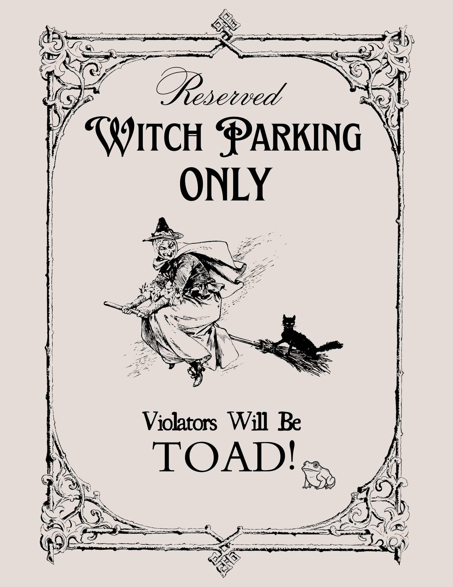I created a new printable if you want to make a witches parking sign too. Simply download the image below and you can use it as you wish to create your own witch themed display.