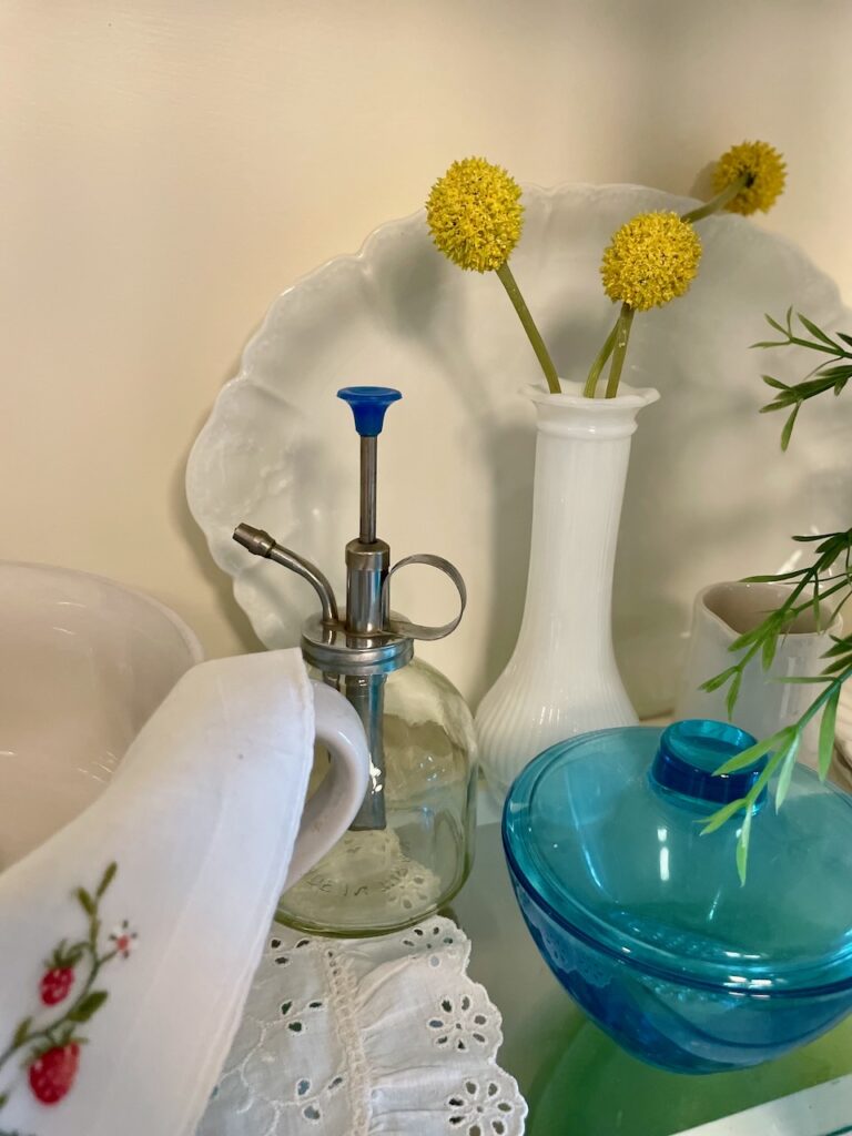 Thrift stores are a great resource to shop for collections. The items are usually priced reasonably, and the selections are unique. I’ve acquired my milk glass, copper, transferware dishes and silver plate collections, to name a few, through years of thrifting,