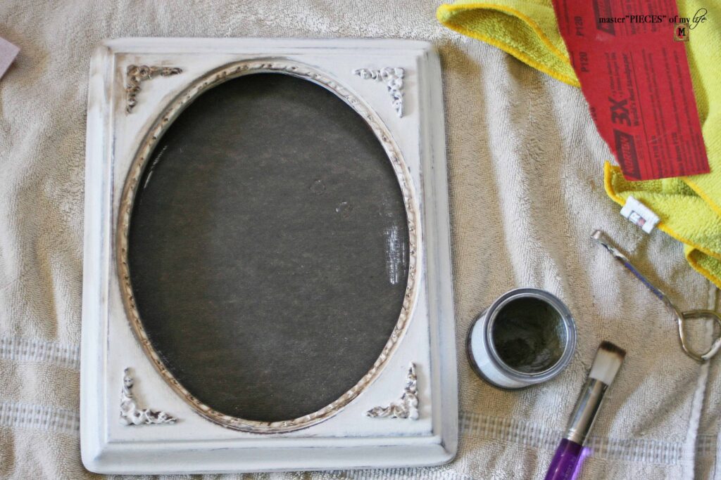 I love all the details on this thrift frame and the oval opening left me smitten. BUT the color was not doing it for me. So here we are. It’s a totally easy fix.