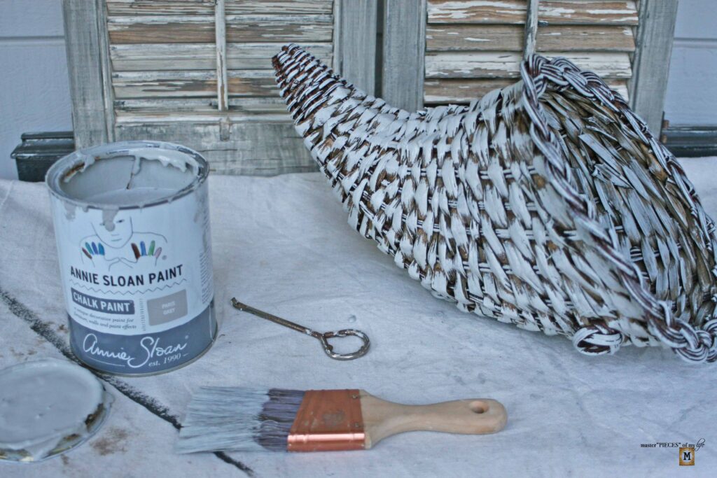 Like I said the cornucopia basket was in great condition and it was not even dirty so there was minimal prep work. I simply dusted it off a bit before starting with the paint application