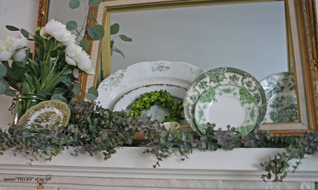 Simply adding some decorative plates on the mantel with some greenery is all that’s needed for creating a fresh and unique mantel-scape.